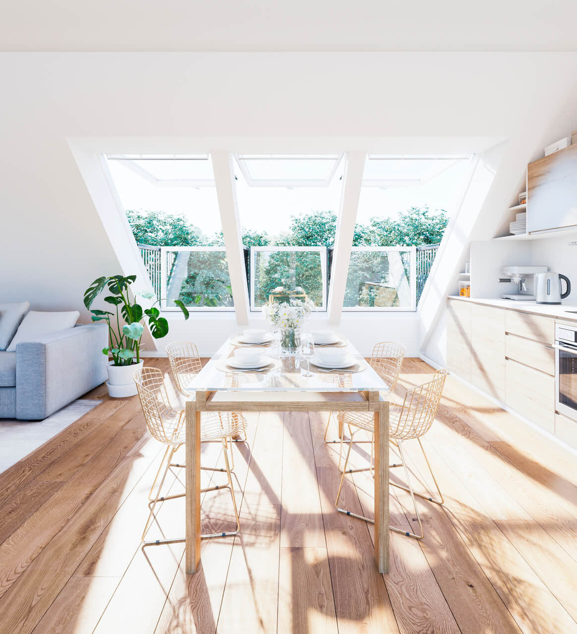 You can also take the opportunity to make sure your new home is designed to get maximum daylight. It’s a must-have feature when we spend up to 90% of our time indoors (according to research from the World Health Organisation), whether it’s for socialising, relaxing or working. Including roof windows in the design is the best way to flood your new home with daylight - VELUX roof windows offer at least twice as much light as vertical windows of the same size.